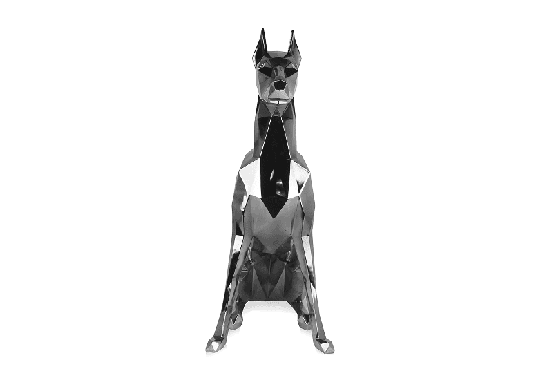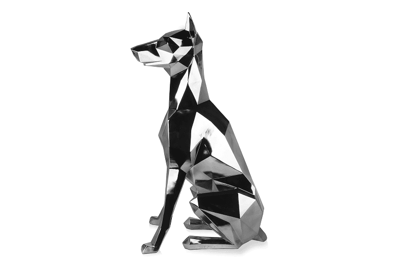 Low poly metal sculpture is a contemporary art form that uses geometric shapes and angular lines to create a three-dimensional representation.
