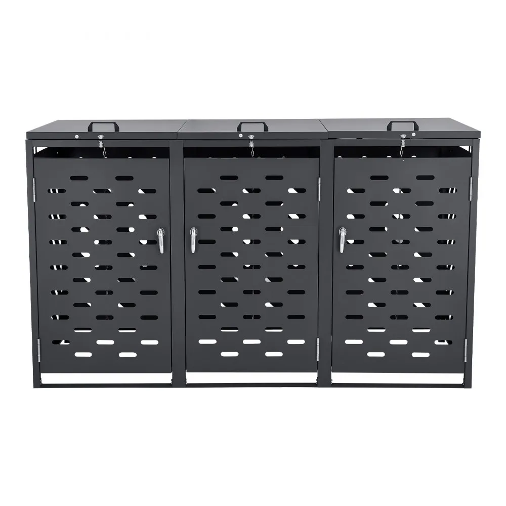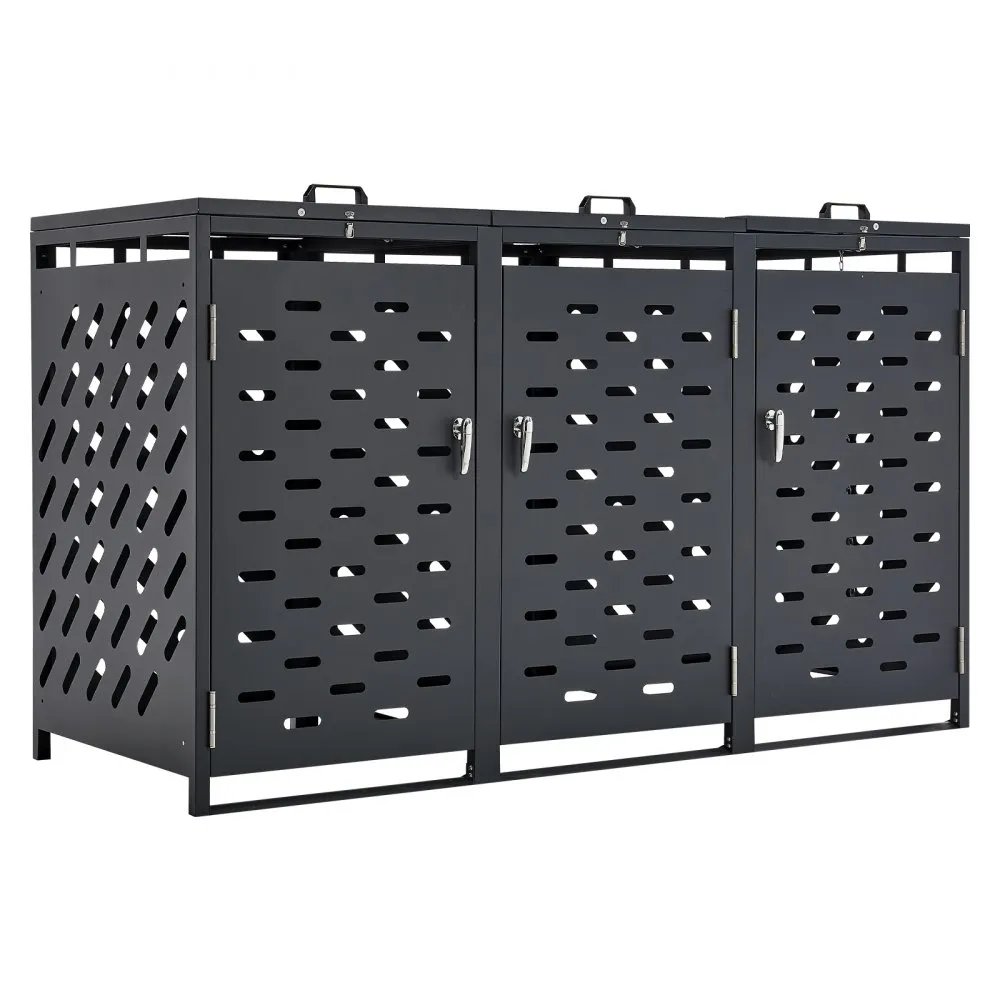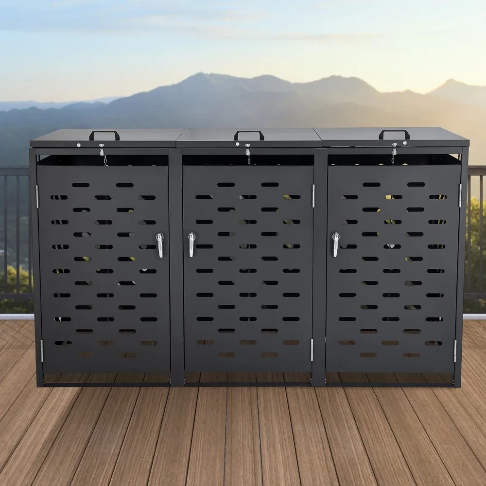 Efficient Outdoor Storage: This metal trash can storage box features an upgraded, larger compartment, effectively concealing and organizing trash cans to maintain a neat and aesthetically pleasing space. It is designed to discreetly store up to three trash cans in your garden, yard, or lawn.